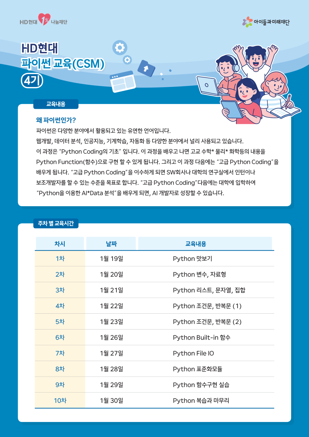 일자리·교육 HD현대 파이썬(SW) 교육 참여 학생 모집