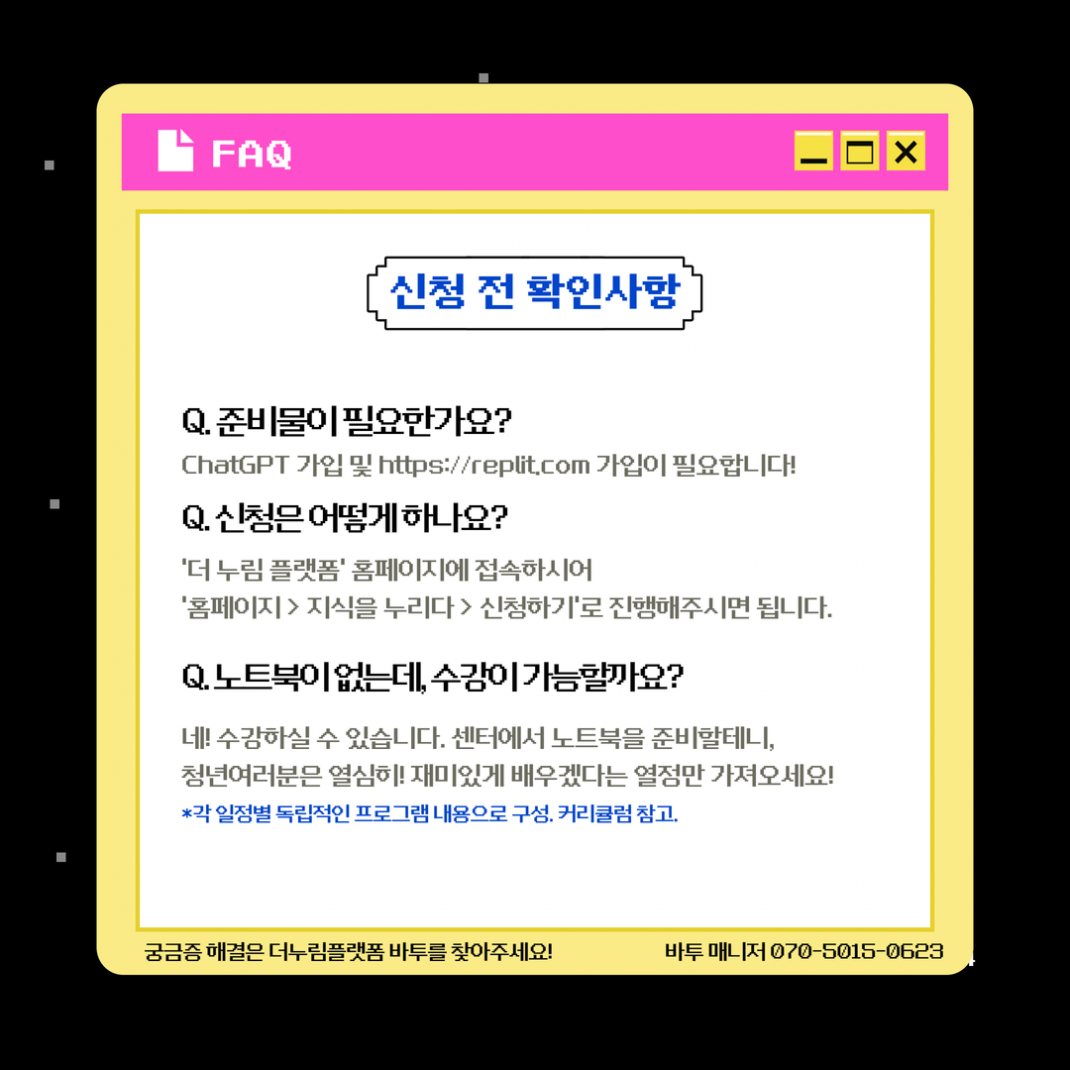 청년 여러분들은 열심히 수업을 함께하려는 열정만 챙겨오시면 되겠습니다!