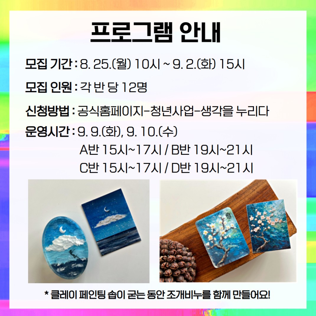 - 내용 25년 9월 여가지원 원데이 클레이 페인팅 솝 교육