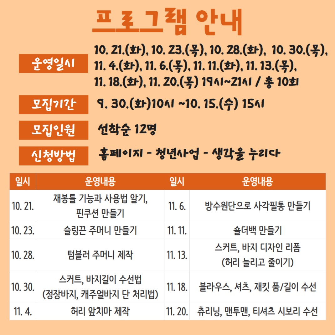 - 내용 25년 10~11월 생활밀착형 <재봉틀 기초반> 교육