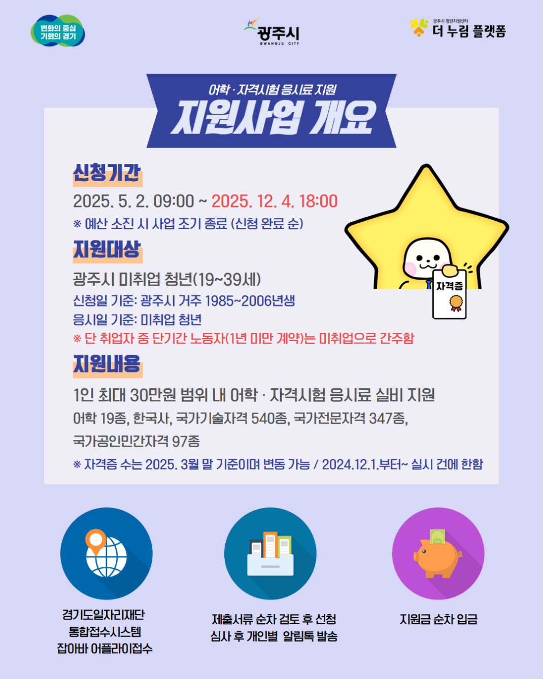 경기청년 역량강화 기회지원 사업 신청 기간 연장! 작성자관리자 등록일 25-12-01 조회10회 본문 경기청년 역량강화 기회지원사업신청 마감 연장! D-3어학/자격증 응시료 지원사업 마감일이 연장되었습니다.기한을 놓쳐 신청하지 못 한 청년이 있다면어서 모이세요!이번 주 목요일까지! 신청 접수 계속됩니다:)☎ 070-5015-0622 2025.12. 광주시 청년지원센터 12월 프로그램 목록