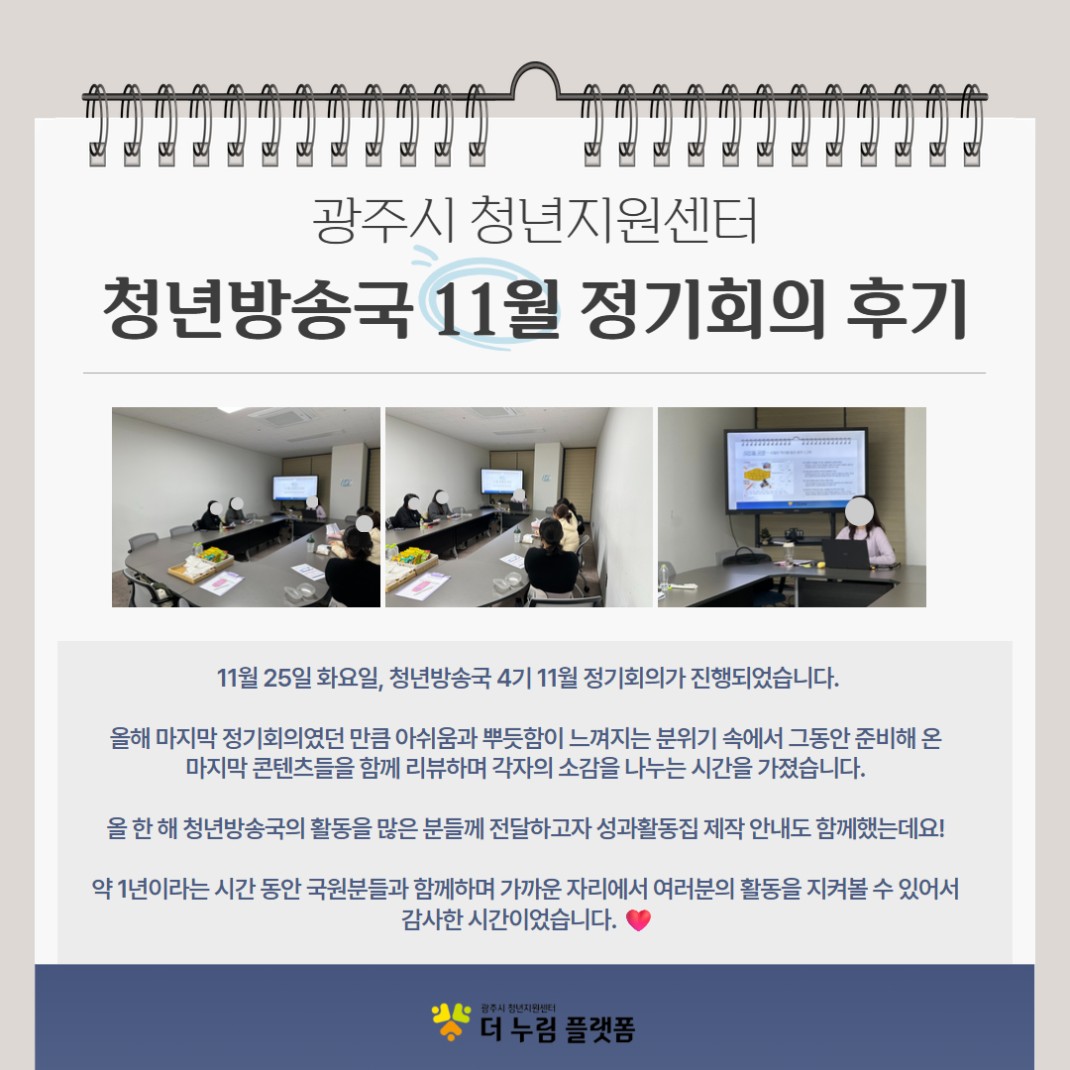 이번 회의를 끝으로 청년방송국 4기의 2025년 활동이 모두 마무리되었는데요!