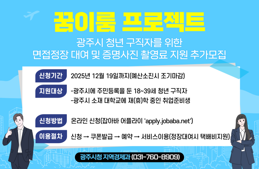 광주시 청년 구직자를 위한 면접정장 대여 및 증명사진 촬영료 지원을 추가모집합니다.