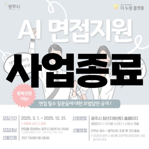 이용권 소진으로 <AI모의면접 지원사업>이 조기 종료 되었음을 안내드립니다.