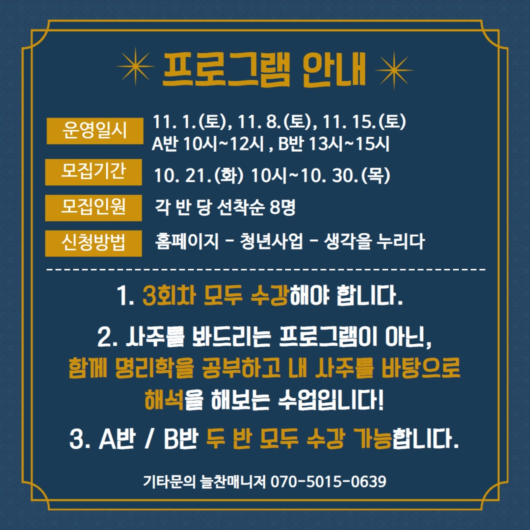11월 라이프코칭에서는 돌아온 <사주기초> 프로그램을 운영합니다.