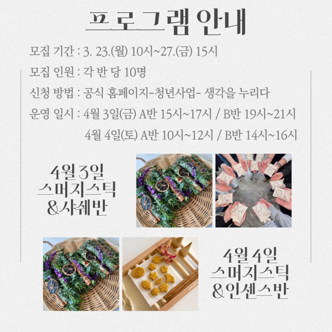 - 내용 26년 4월 취미연구소 <스머지스틱> 교육