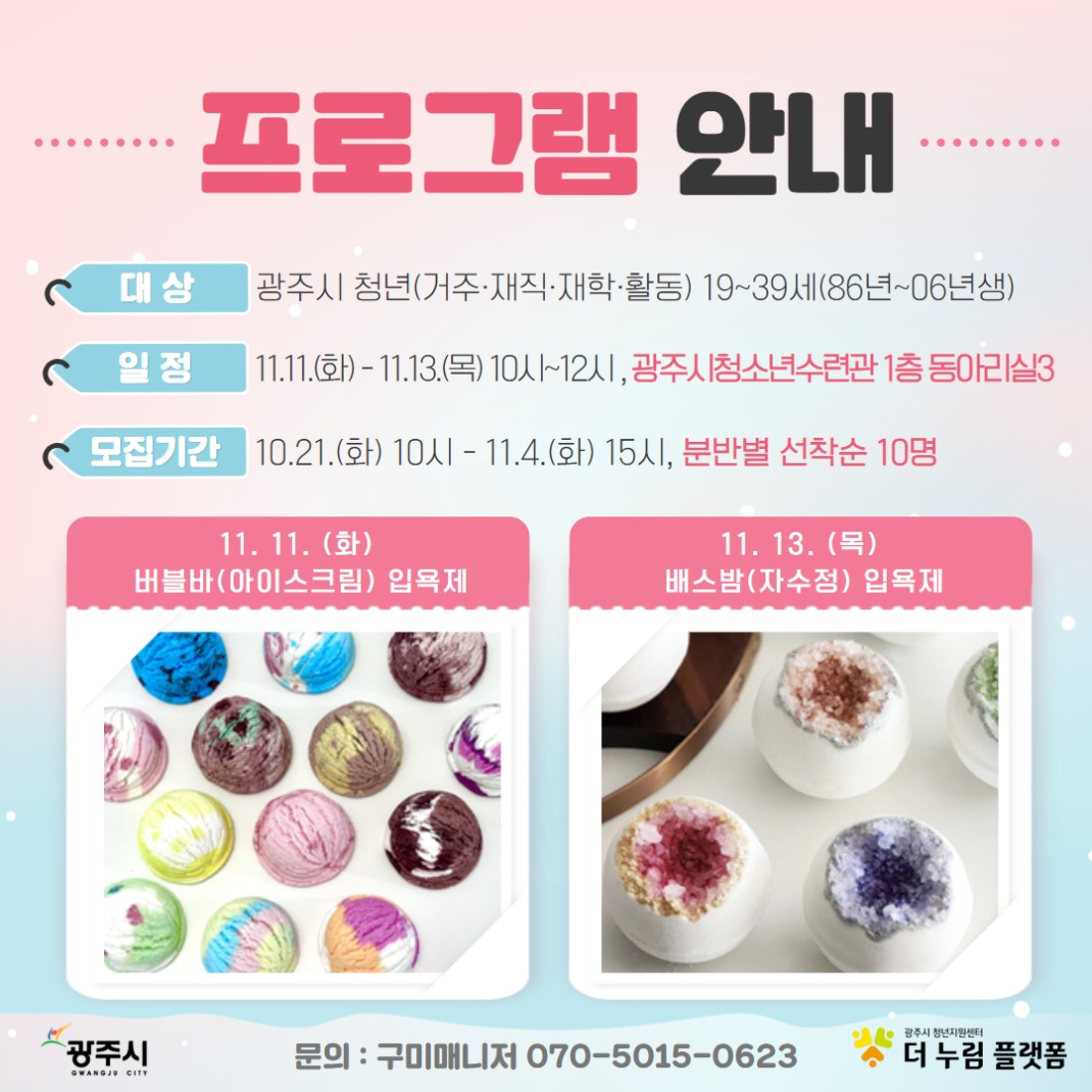 11월 찾아가는 청년센터 <광주시청소년수련관 X 나만의 입욕제 만들기>