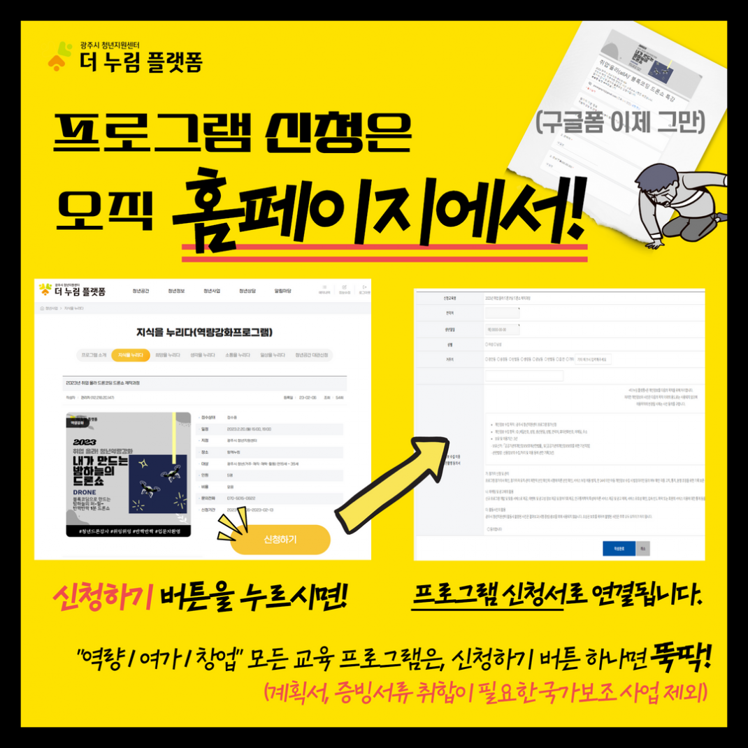 모든 프로그램 접수는 홈페이지를 통해서 이루어진다는 점을