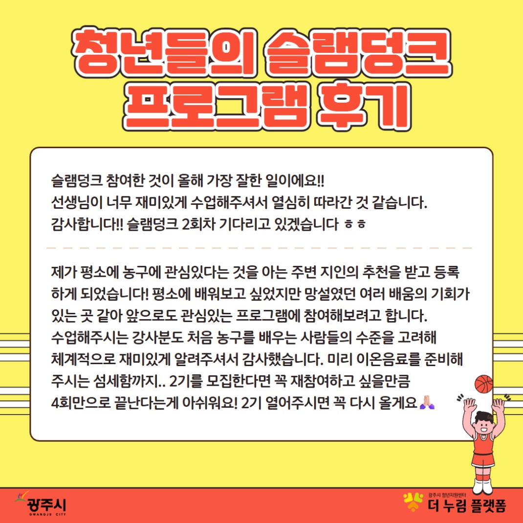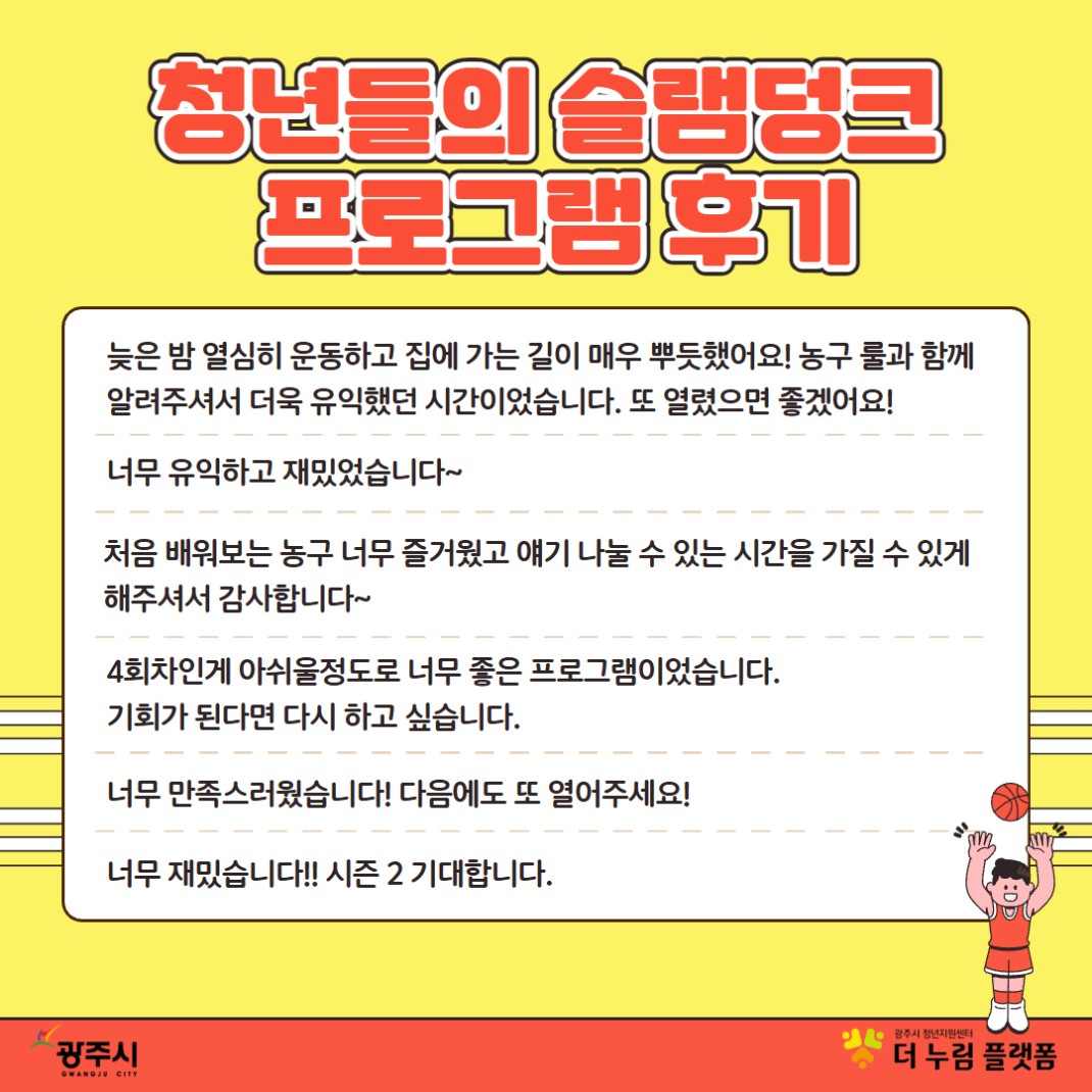 9월 3일부터 24일까지, 퇴촌청소년문화의집에서 [청년들의 슬램덩크]가 진행되었어요!