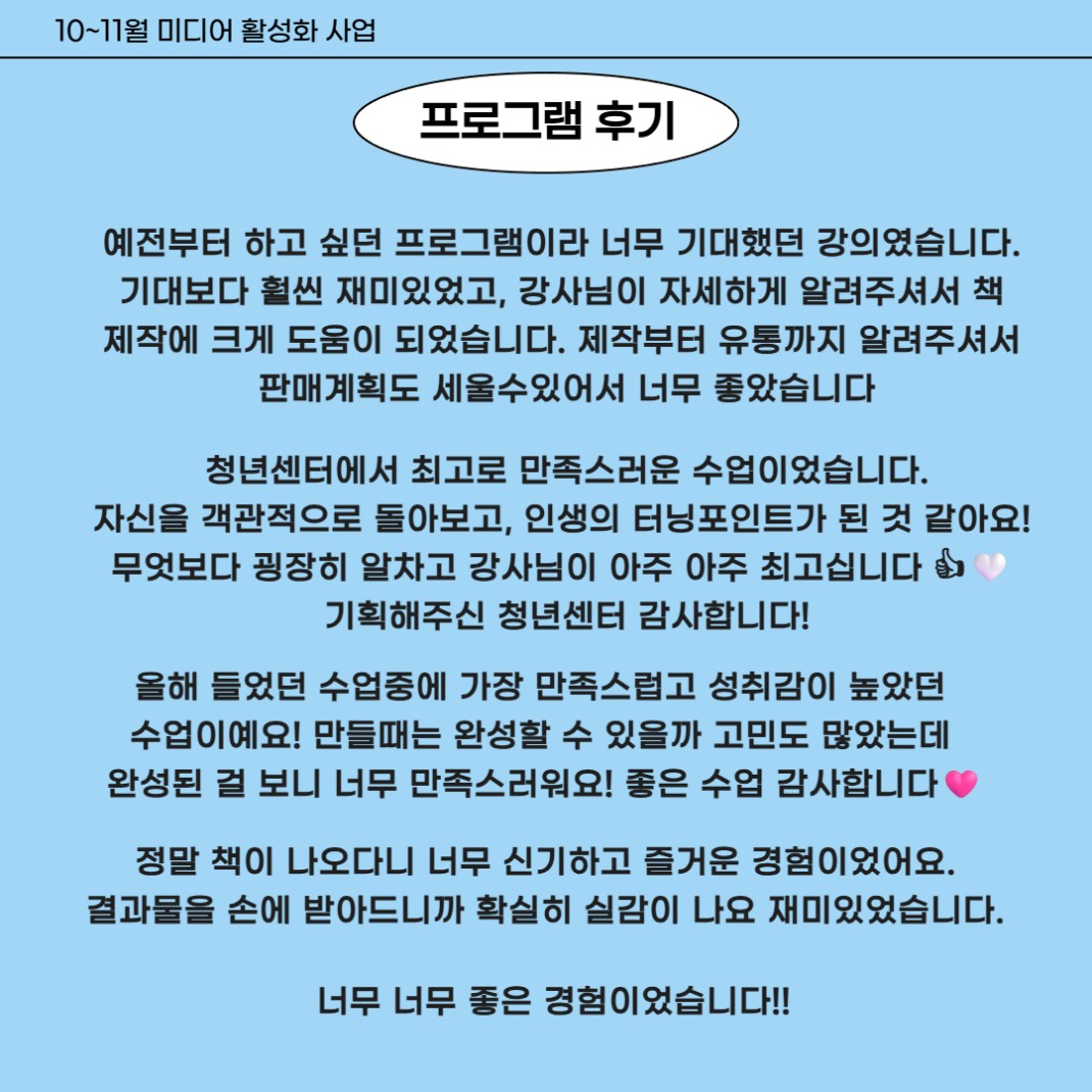 <6주만에 나만의 책 만들기 후기> 10~11월 미디어 활성화