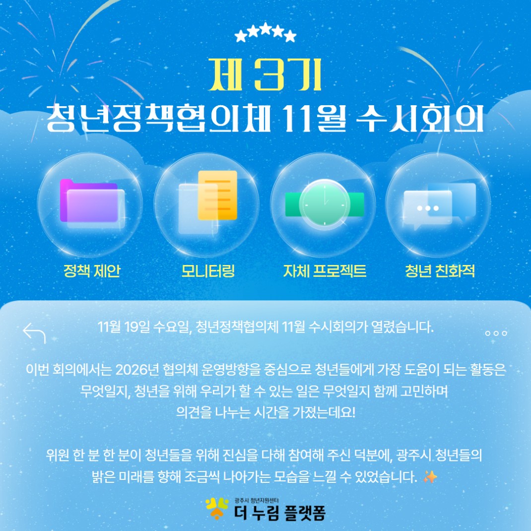 11월 19일 수요일, 청년정책협의체 11월 수시회의가 진행되었습니다.